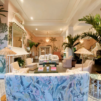 Down the street is another amazing hotel to eat and stay at called The Colony, nicknamed "Pink Paradise" since 1947. It is truly a little paradise. As I was sitting and having breakfast at Swifty's outside overlooking the pool at The Colony Hotel, I felt transported in back in time. The avocado toast with egg was so good by the way! The green striped lawn chairs and pink floats flamingo floats were so charming! What I loved most about The Colony is the interior design and attention to detail everywhere. Just over a year ago, this hotel was actually designated as a landmark. The inside lobby was recently redesigned by Kemble Interiors and the handpainted de Gournay lobby mural is so beautiful! By the way, a cute little story behind the logo, which is a spider monkey holding a pink flag. The spider monkey named Johnnie Brown was the pet of an eccentric architect of the 1920's named Addison Mizner. The monkey became a celebrity in Palm Beach and would reside on Mizner's shoulder wherever he went. The Colony is an absolute must!